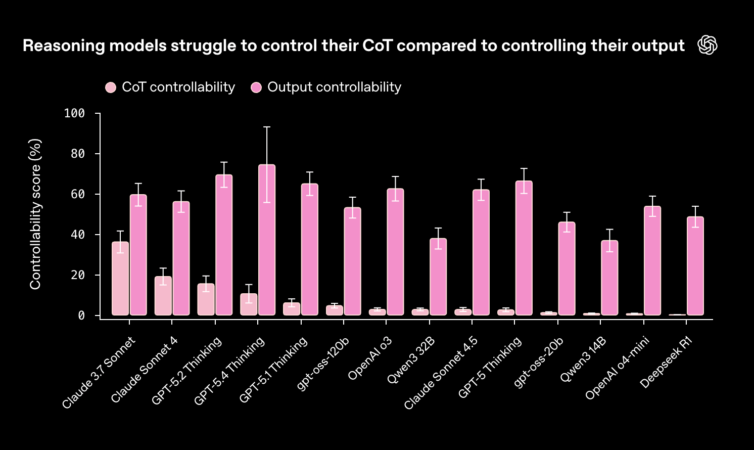 Zusammenfassung: OpenAI und Anthropic testeten mit der Benchmark-Suite CoT-Control, ob Reasoning-Modelle ihre Chain-of-Thought-Traces gezielt manipulieren können, um Monitoring zu umgehen. Ergebnis: Alle 13 Frontier-Modelle scheitern weitgehend – die Kontrollraten liegen zwischen 0,1 und maximal 15,4 Prozent. Größere Modelle zeigen etwas höhere Werte, diese sinken jedoch bei längeren Reasoning-Traces und nach zusätzlichem Reinforcement Learning. Die niedrige Kontrollierbarkeit deutet darauf hin, dass Modelle ihre Denkprozesse derzeit nicht gezielt verschleiern können.